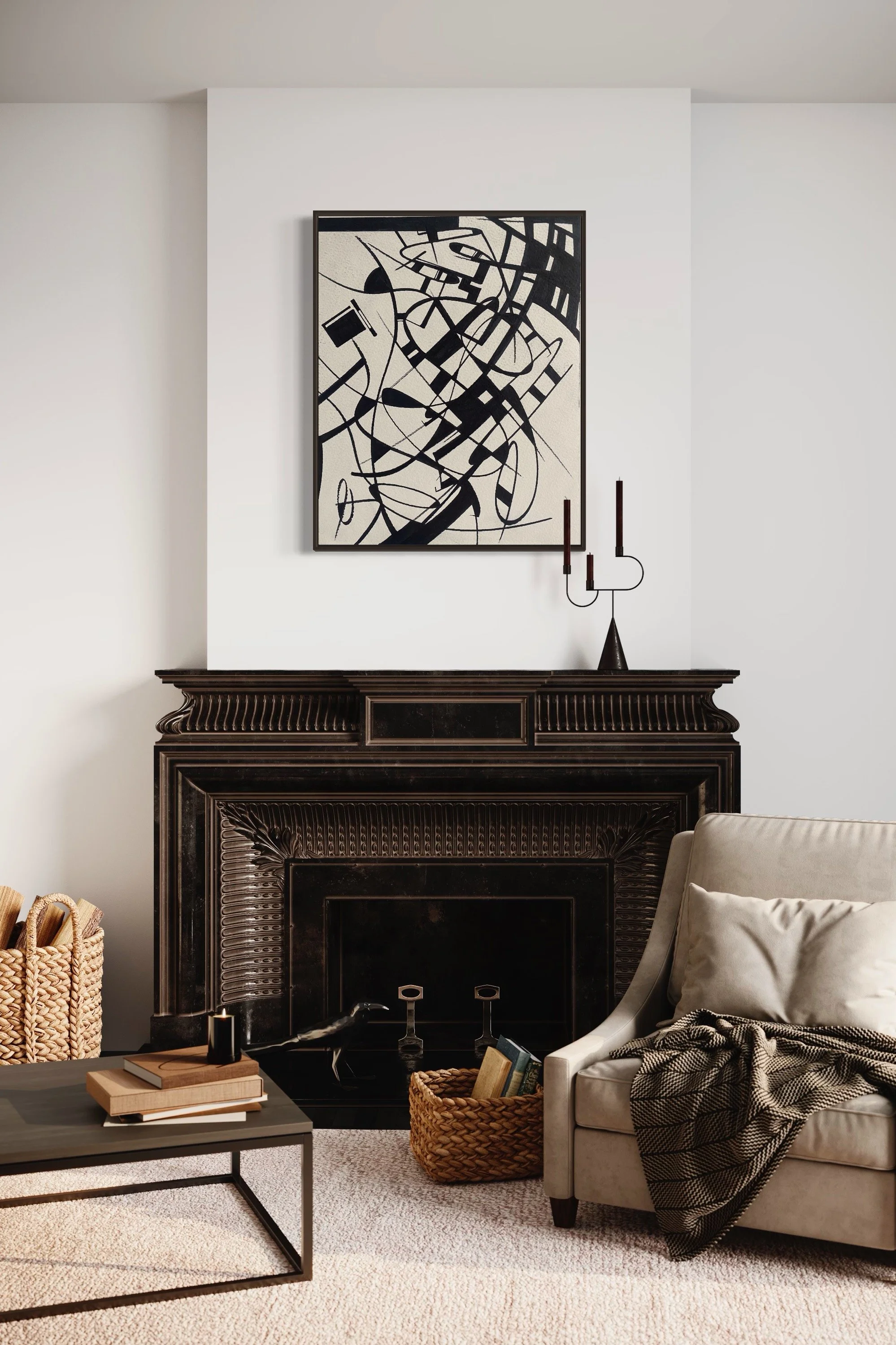 Kosmos ouvre un espace de contemplation où chaque tracé évoque la gravitation des astres et la circulation des forces invisibles. L’œuvre agit comme une cosmographie abstraite, une écriture noire qui cartographie l’infini et ordonne le chaos apparent de l’univers. À la croisée de la rigueur et de l’intuition, elle invite le regardeur à se situer dans une constellation en perpétuelle mutation, miroir de l’équilibre fragile entre mémoire et avenir.